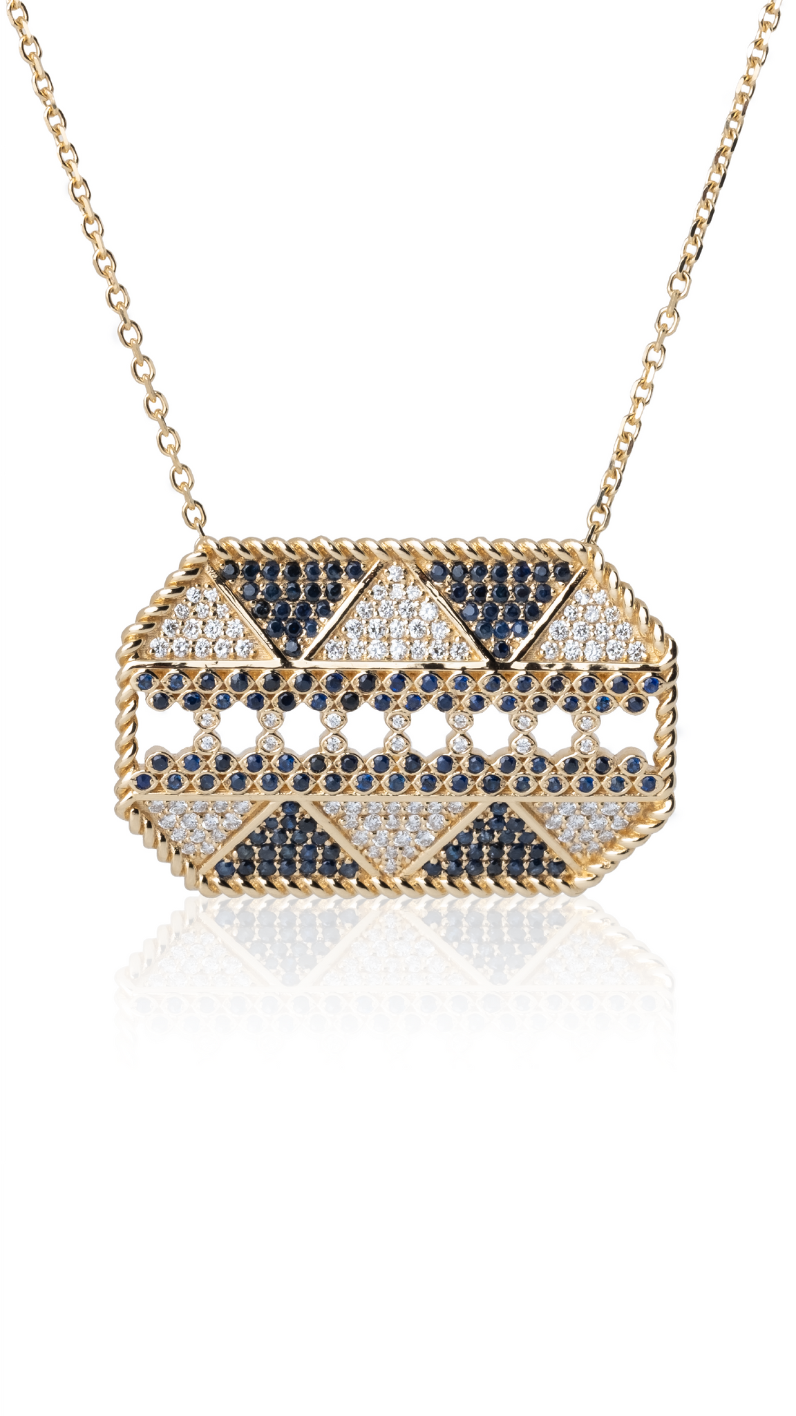 A piece was inspired from Al- Sadu which is a traditional weaving technique of the United Arab Emirates and is central to Bedouin culture. its a mix between traditional Arabic gold with twist of modernity in colors and pattern.