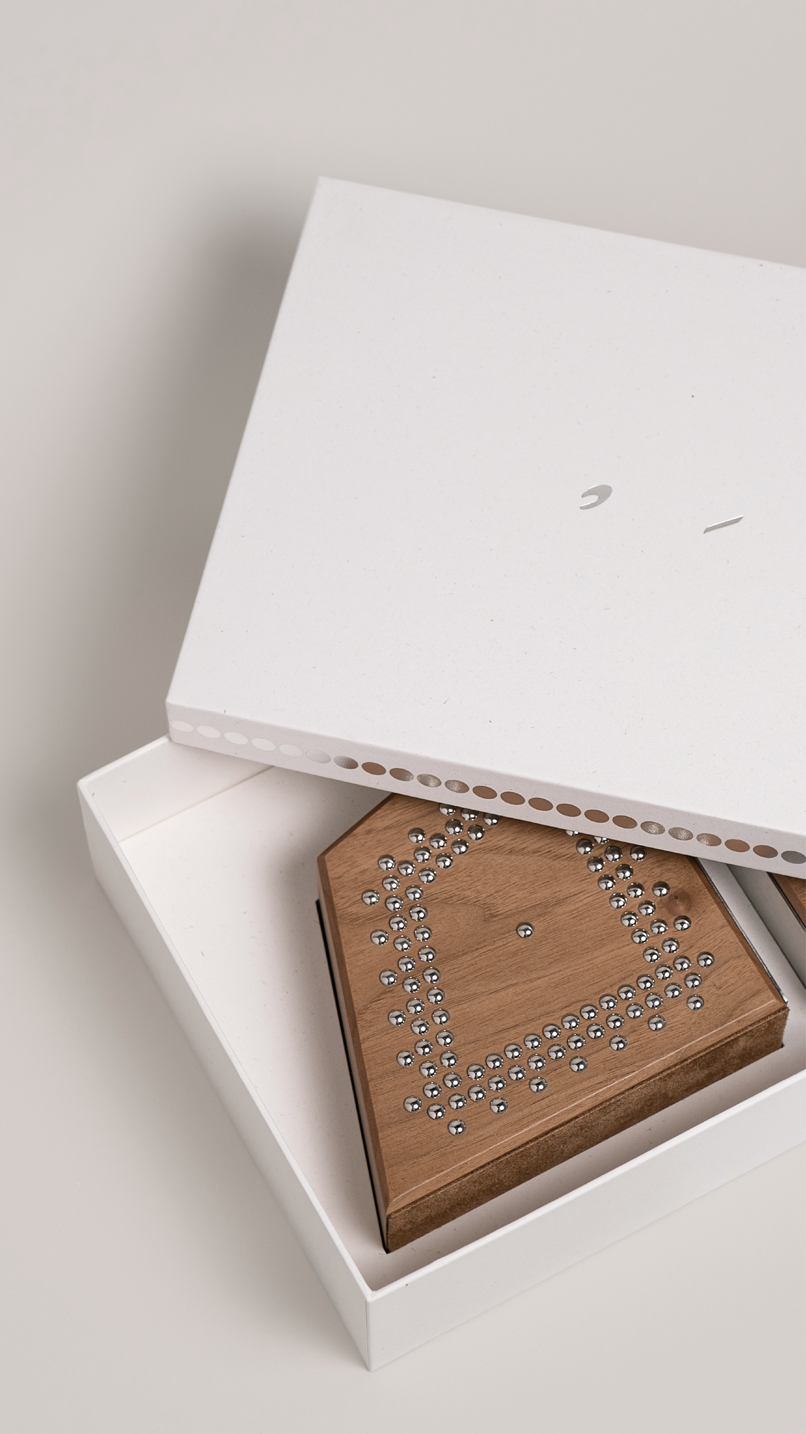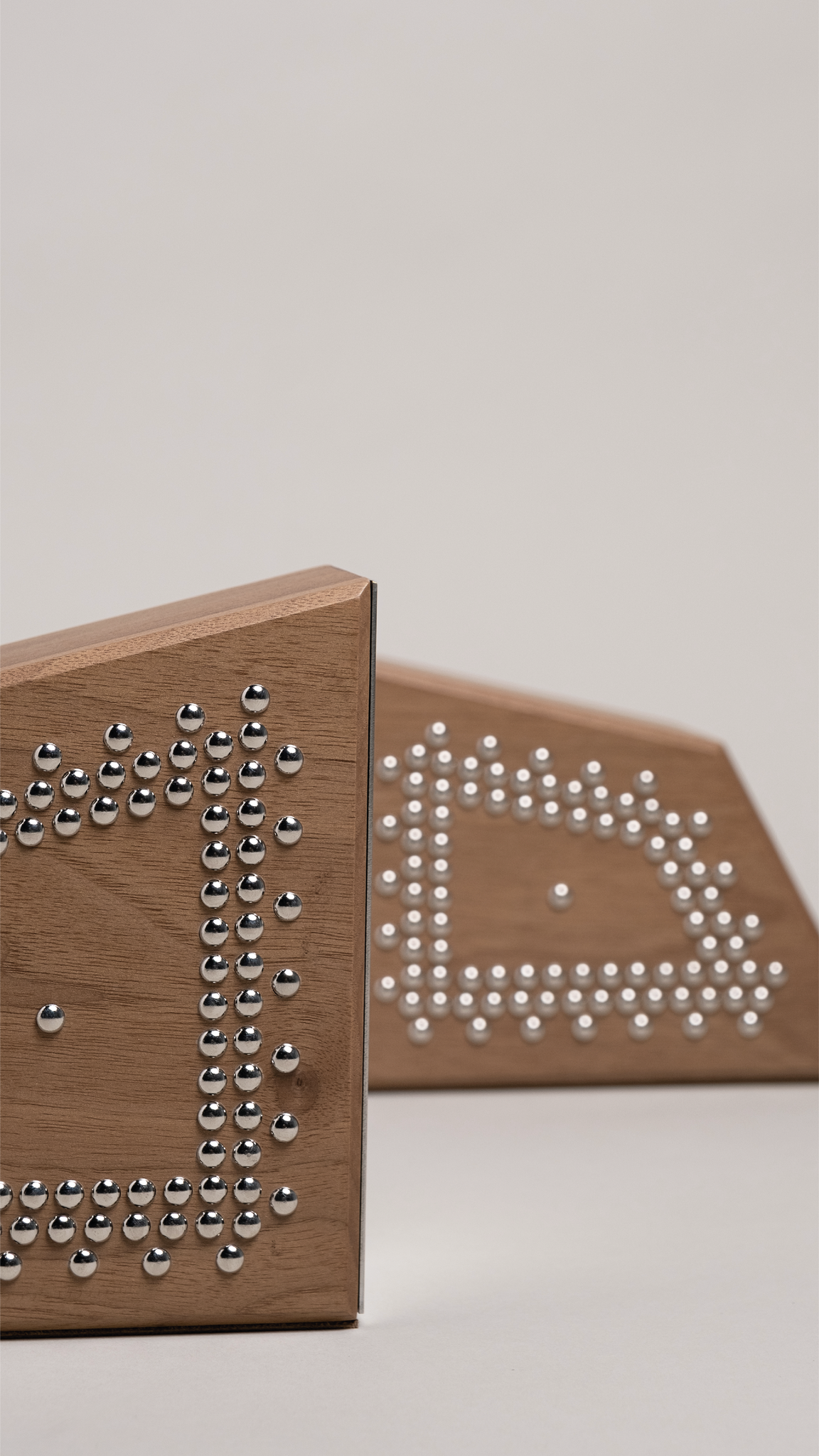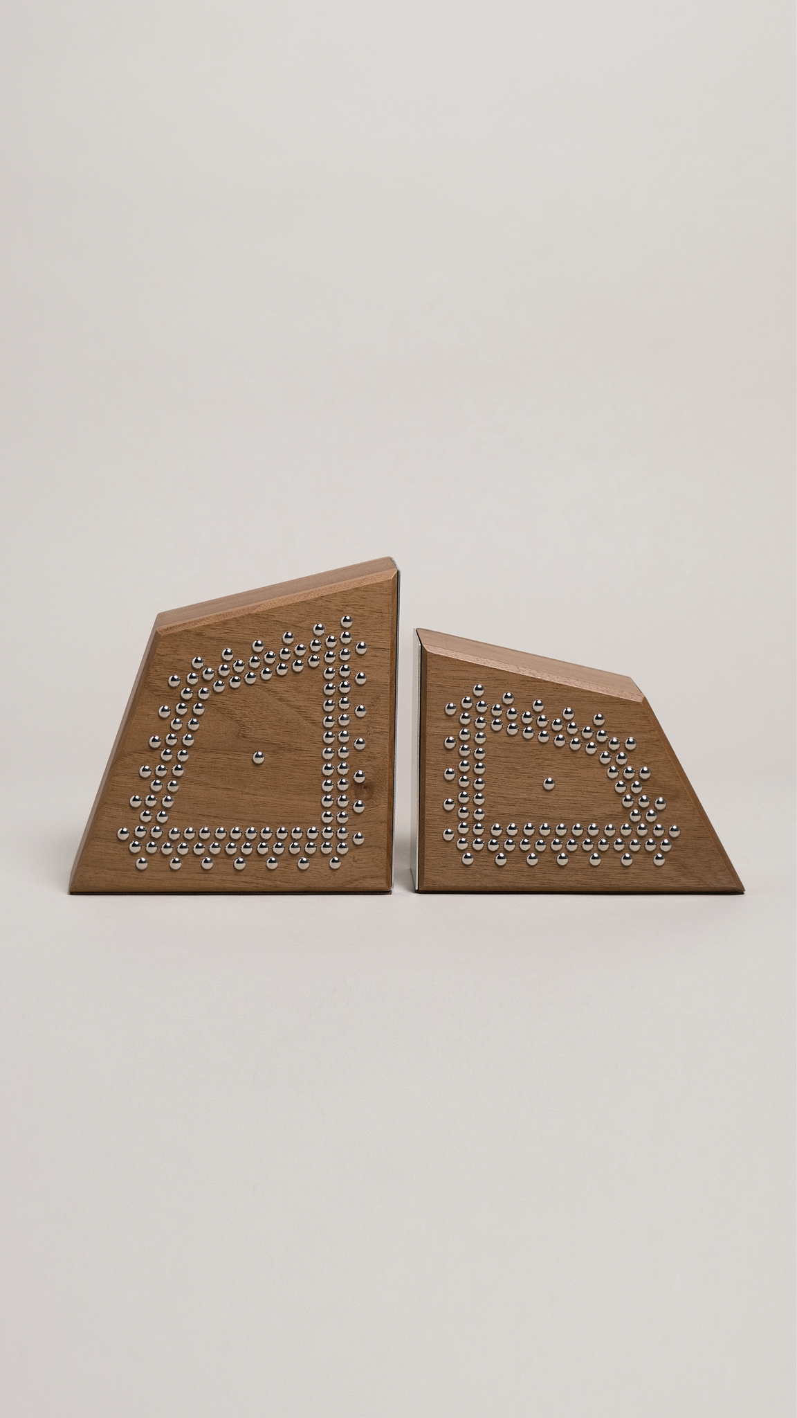 The bookend design was inspired by the traditional Mandoos, treasury box used by Emiratis to keep their precious items safe. They are distinguished by the nails which decorate the box, forming geometric pattern all over.