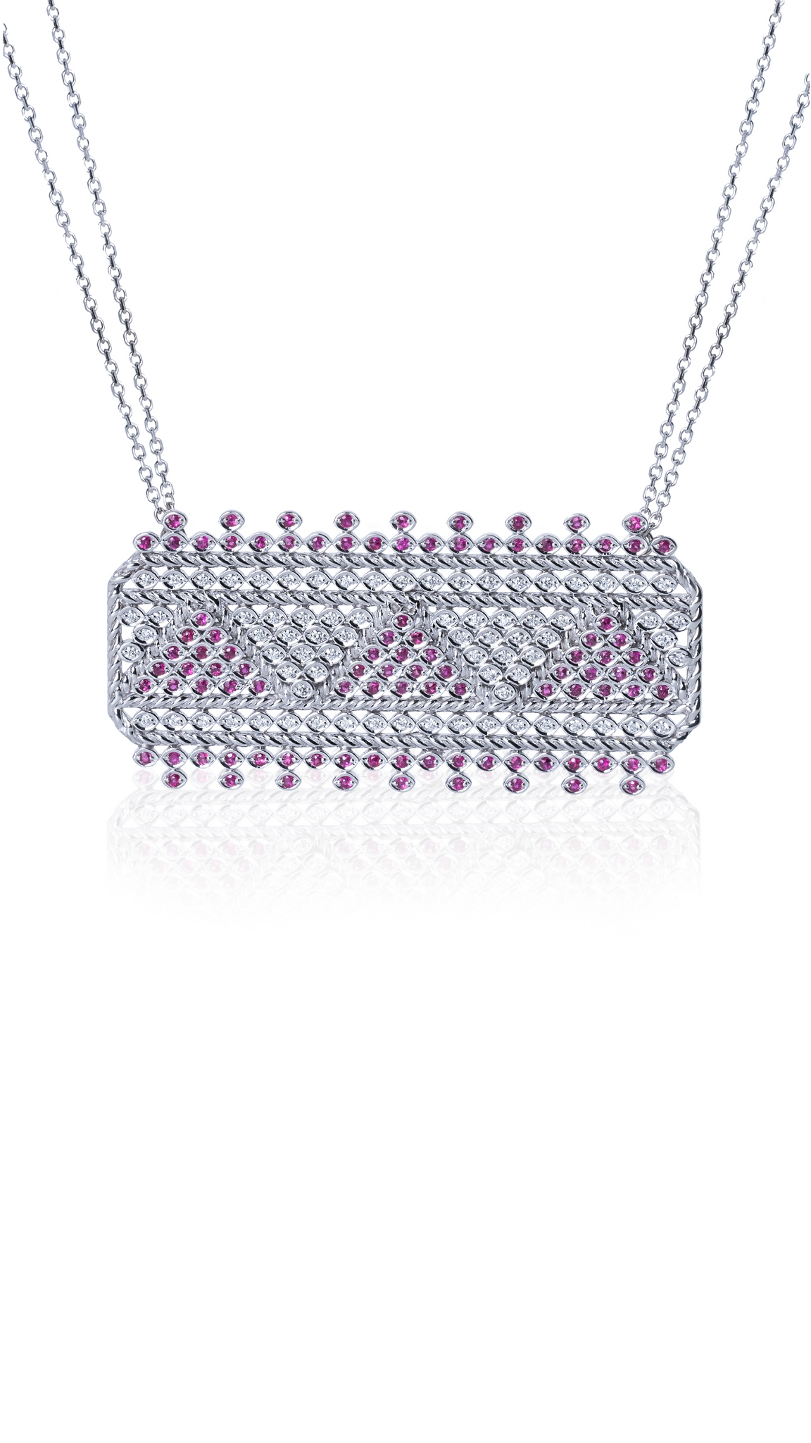 A piece was inspired from Al- Sadu which is a traditional weaving technique of the United Arab Emirates and is central to Bedouin culture. its a mix between traditional Arabic gold with twist of modernity in colors and pattern.
